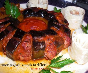 Küçük köfteler yapıp sudan çıkardığımız patlıcan dilimlerinin arasına sırayla yerleştirelim( köfteleri koyunca patlıcan ay şeklini alacaktır )