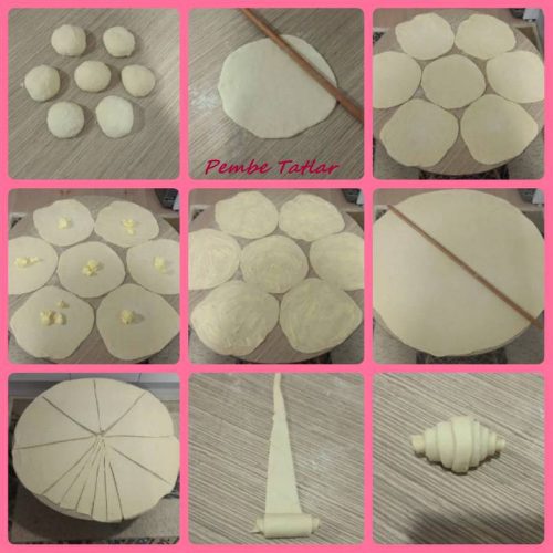 Açtığınız hamuru önce 4 eşit parçaya kesip her bir parçayı 8-10 dilim olacak şekilde kesip rulo sarıp yağlı kağıt serilmiş fırın tepsisine aralıklı olarak yerleştirin. (mayalanınca çok kabarıyor)